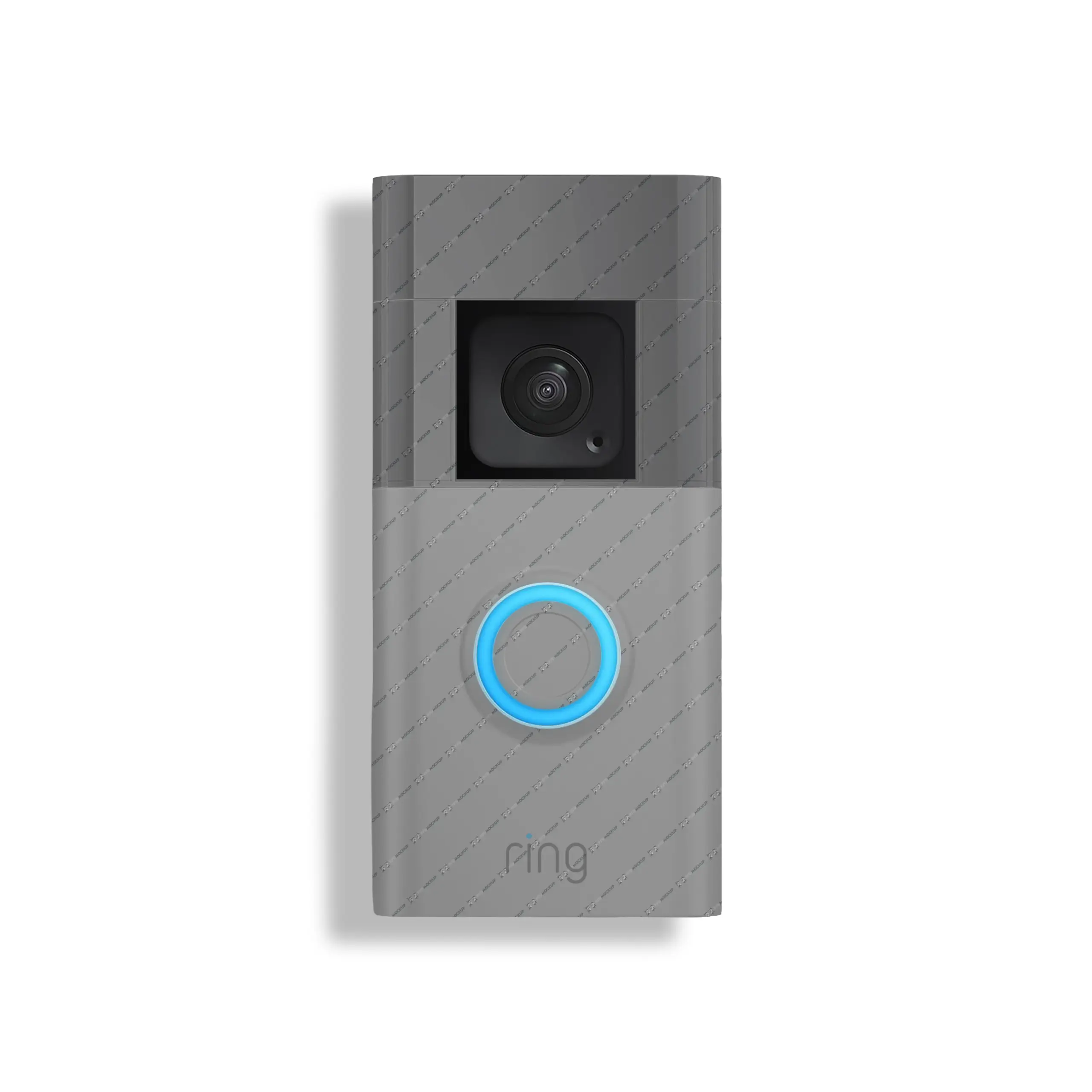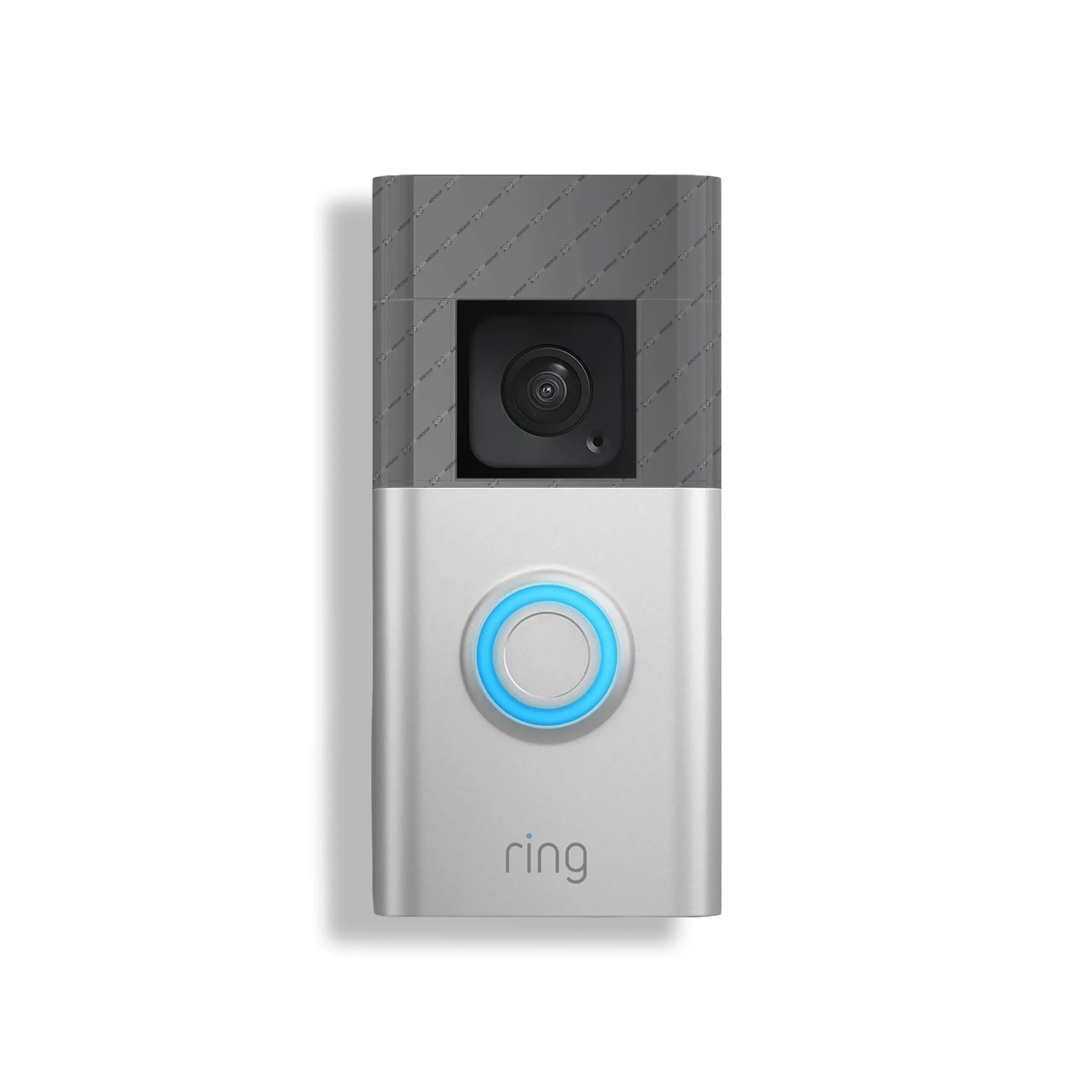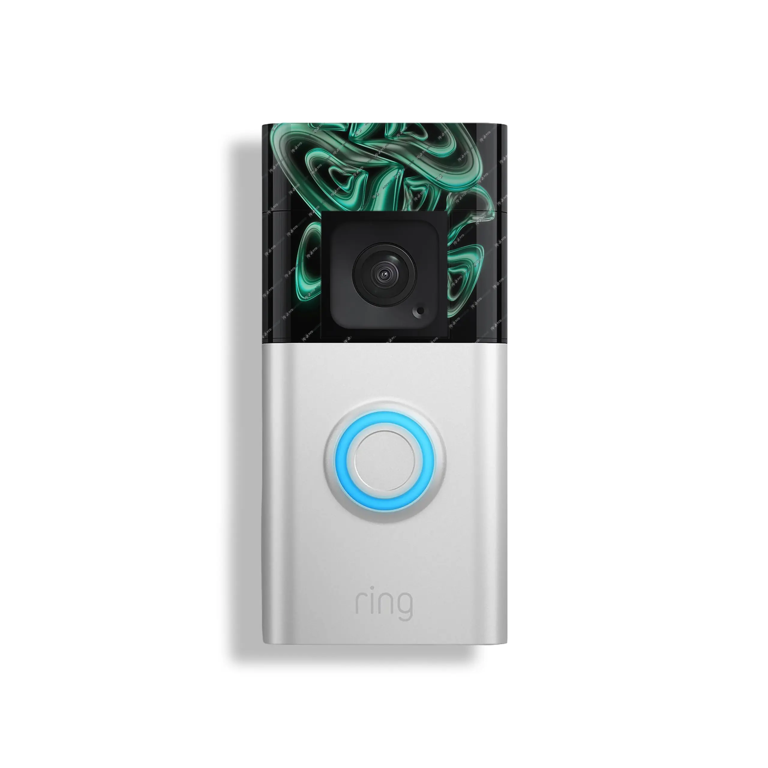 Highlights the doorbell’s rechargeable battery pack and sleek finish, making it ideal for promoting custom skins in home security tech niches