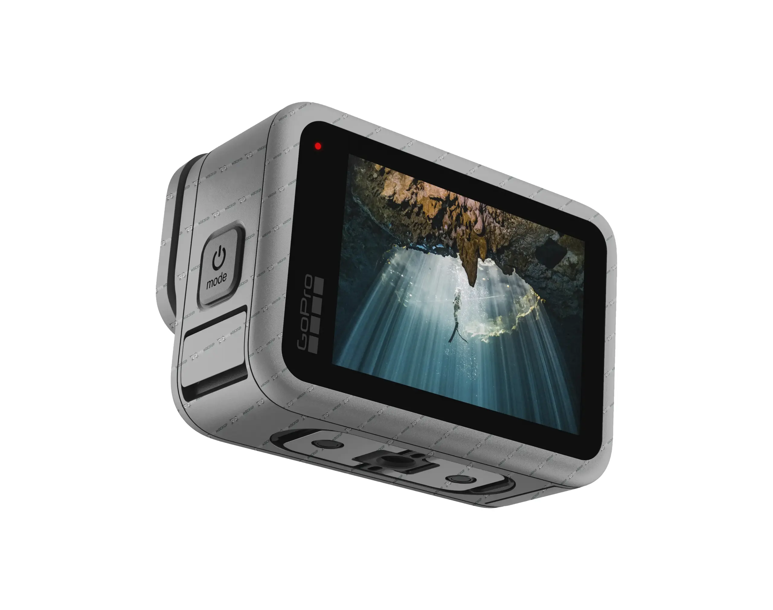 Accurately mapped to GoPro HERO13 Black dimensions (71.8 x 50.8 x 33.6 mm) for true-to-life previews.