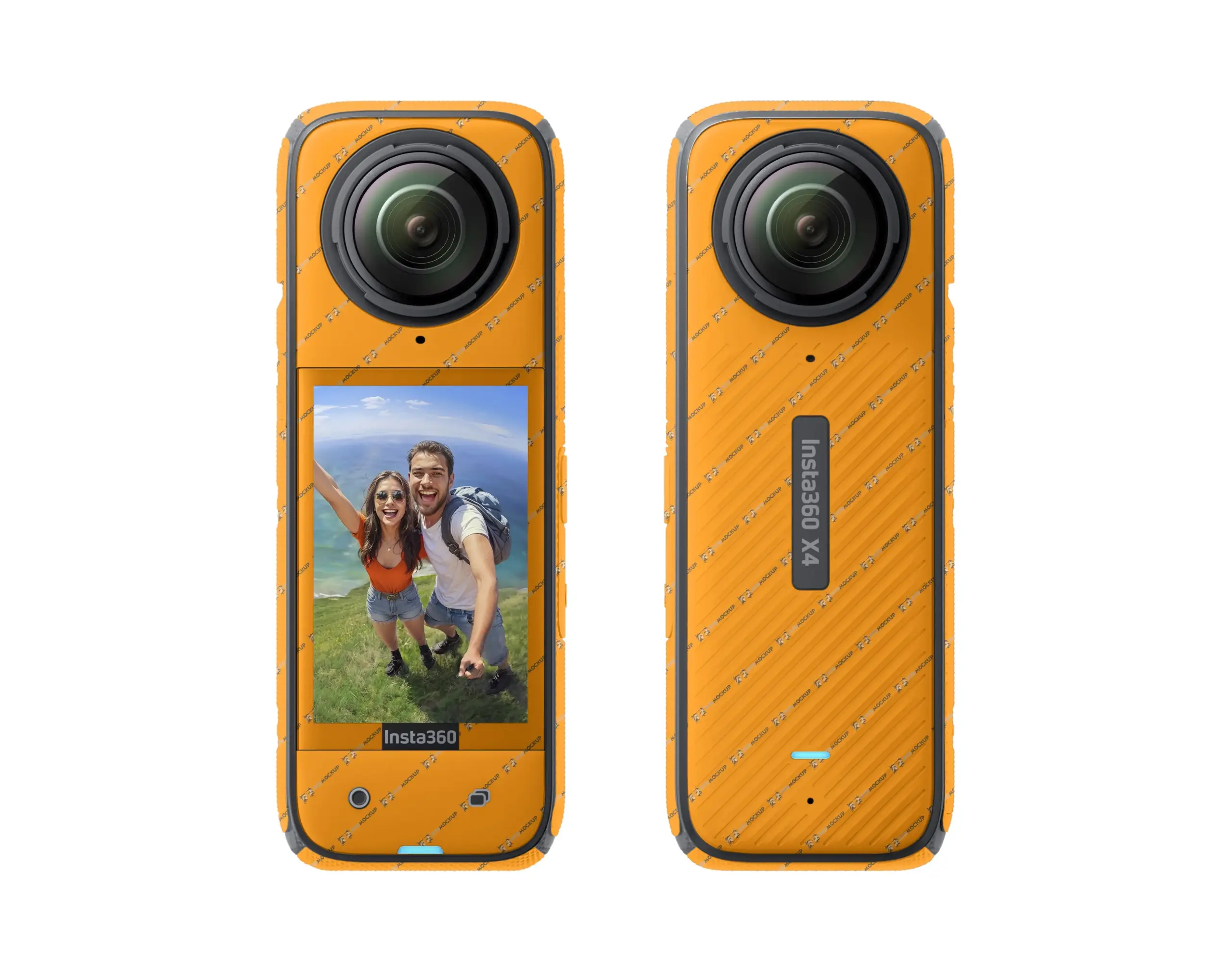 Showcase your custom Insta360 X4 skin designs in a clean, professional way with this high‑resolution PSD mockup. The camera is presented in a bright, eye‑catching orange skin with both front and back views, so your artwork is visible from every angle. This mockup is perfect for vinyl skin shops, digital product sellers, and designers who want realistic product previews for websites, marketplaces, and social media.